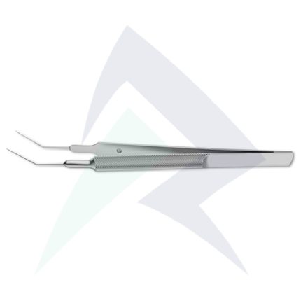 round handle, 12.0 mm long angled jaws w/ iris stop, extra delicate 0.5 mm pad at distal tips, 4-1/4" (11.0 cm)