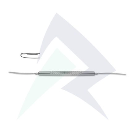 double-ended, 1.75 mm x 30.0 mm silver blades, slightly curved, 5-1/2" (14.0 cm)
